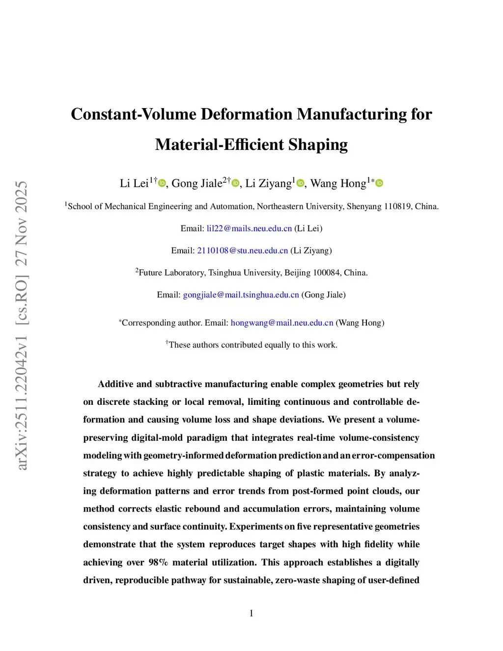Volume-Consistent Kneading-Based Deformation Manufacturing for Material-Efficient Shaping
