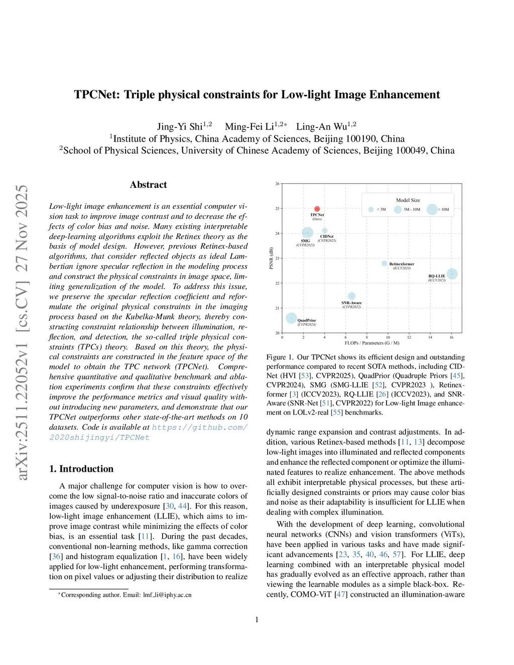 TPCNet: Triple physical constraints for Low-light Image Enhancement