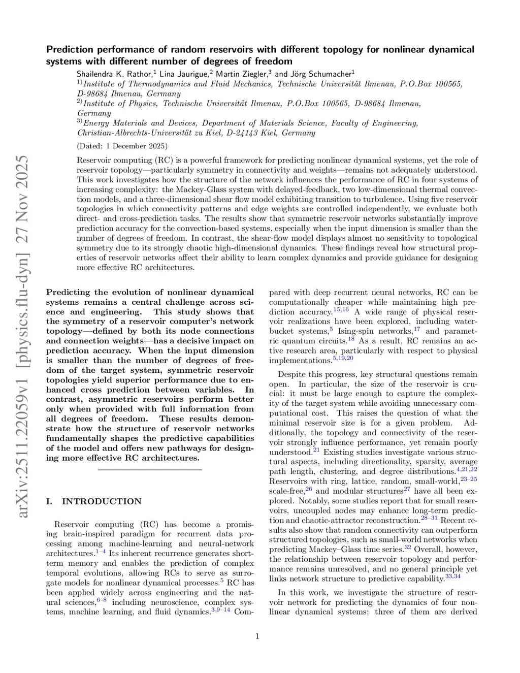 Prediction performance of random reservoirs with different topology for nonlinear dynamical systems with different number of degrees of freedom