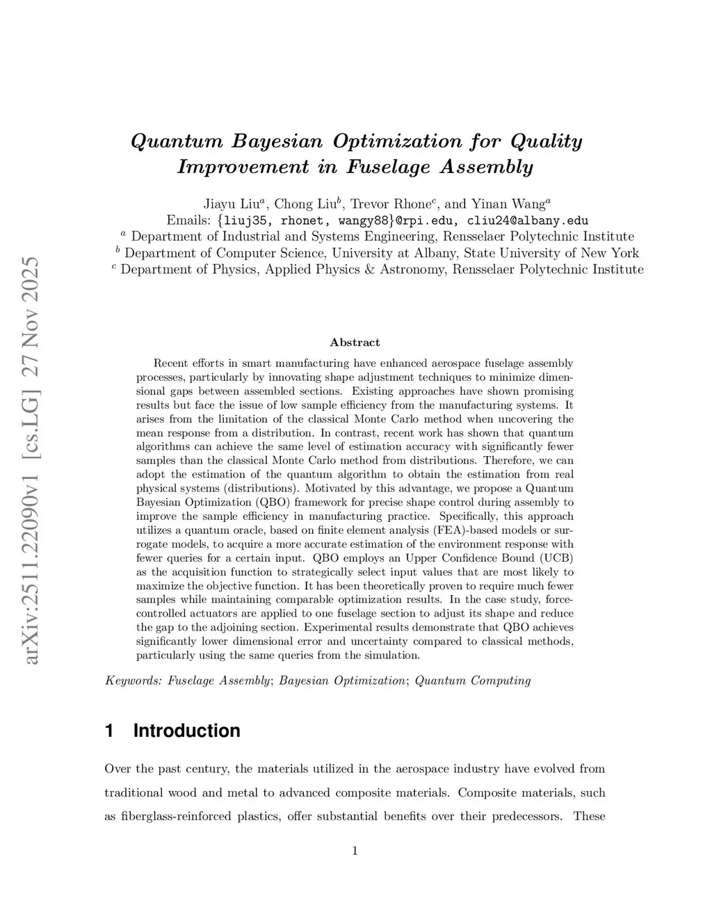 Quantum Bayesian Optimization for Quality Improvement in Fuselage Assembly