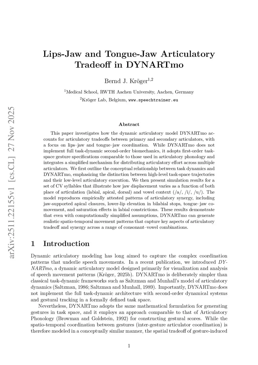 Lips-Jaw and Tongue-Jaw Articulatory Tradeoff in DYNARTmo