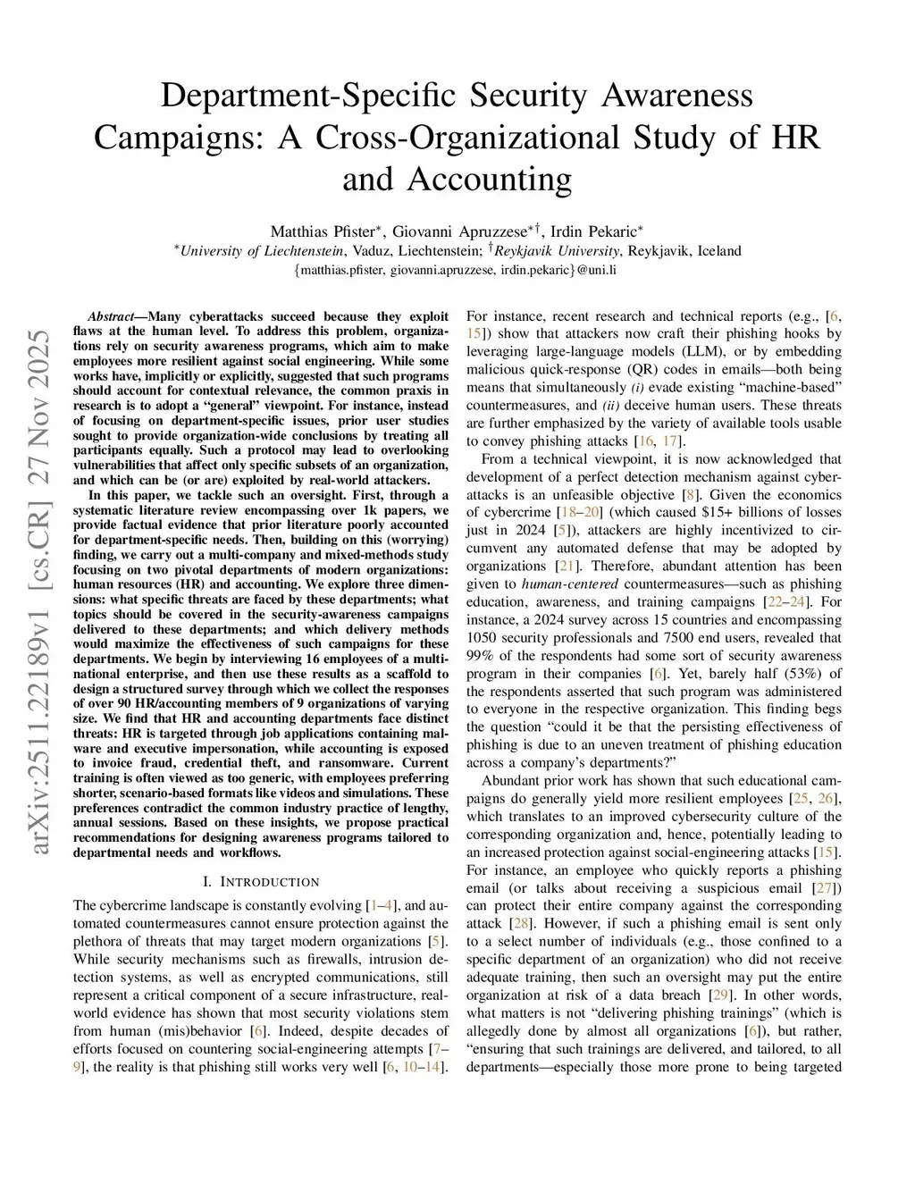 Department-Specific Security Awareness Campaigns: A Cross-Organizational Study of HR and Accounting