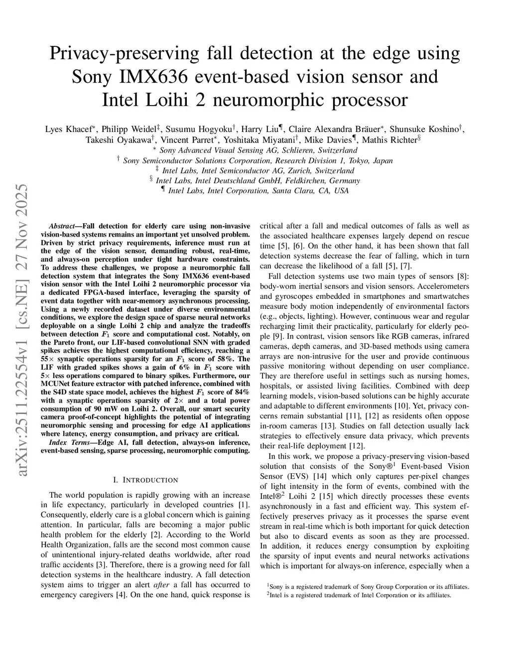 Privacy-preserving fall detection at the edge using Sony IMX636 event-based vision sensor and Intel Loihi 2 neuromorphic processor