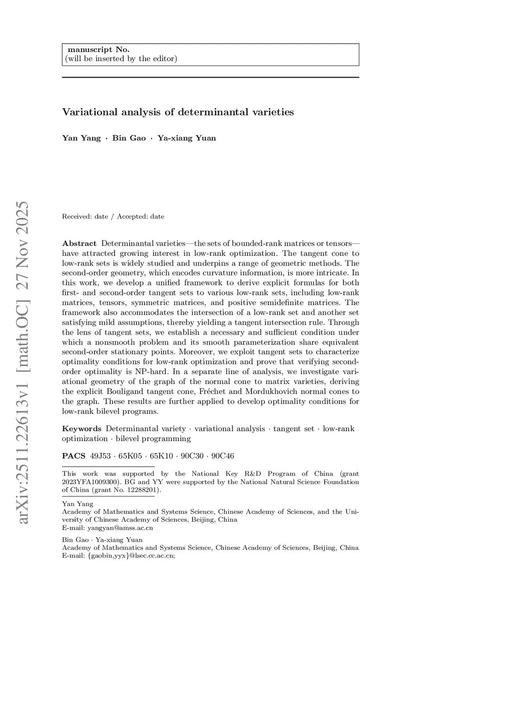 Variational analysis of determinantal varieties