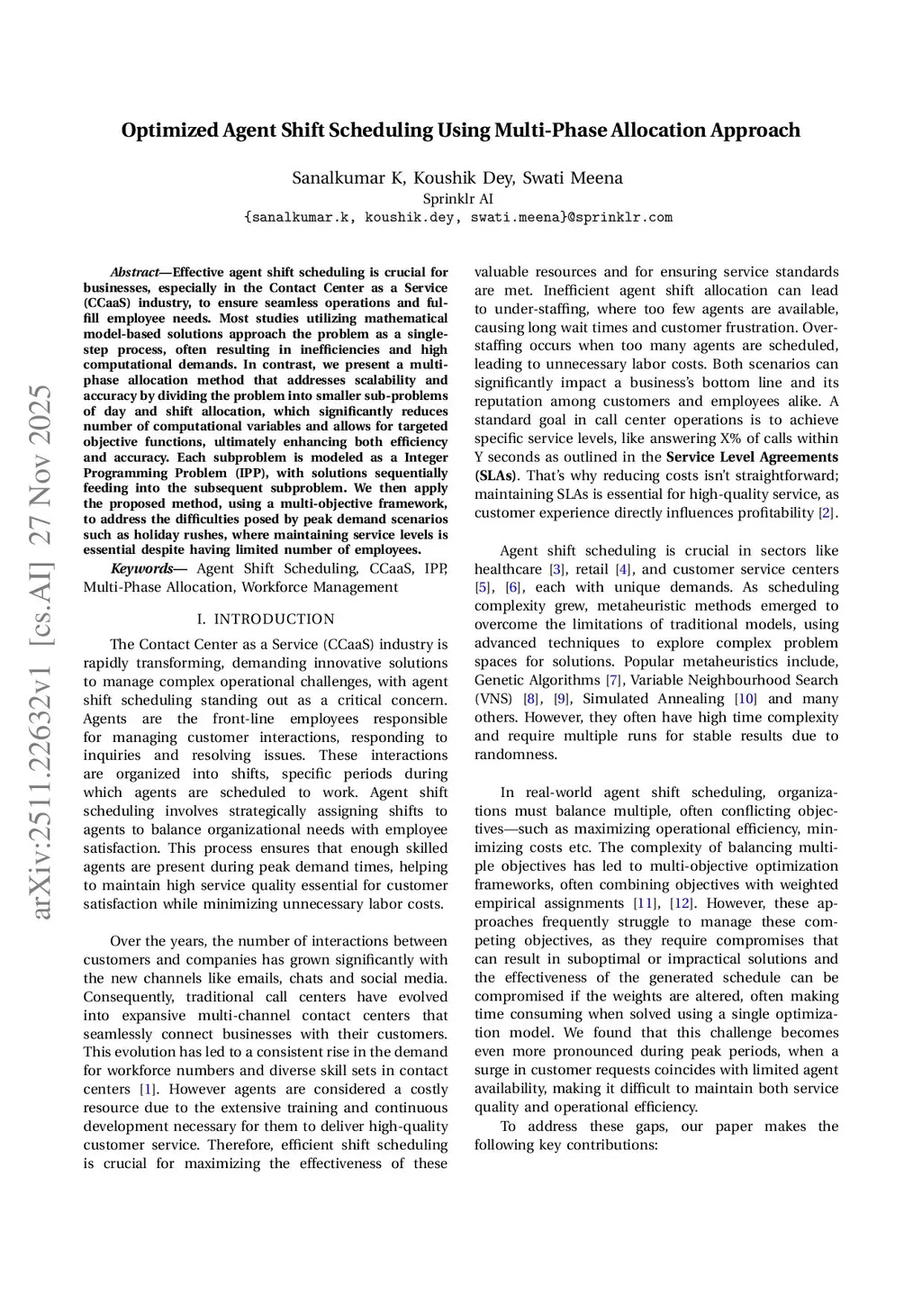 Optimized Agent Shift Scheduling Using Multi-Phase Allocation Approach