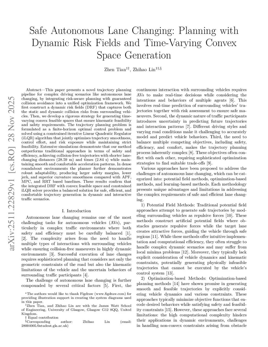 Safe Autonomous Lane Changing: Planning with Dynamic Risk Fields and Time-Varying Convex Space Generation
