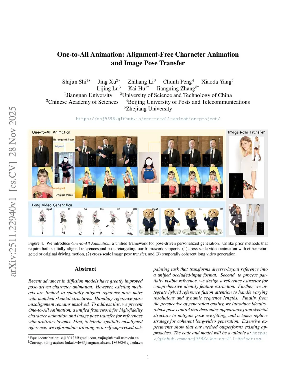 One-to-All Animation: Alignment-Free Character Animation and Image Pose Transfe
