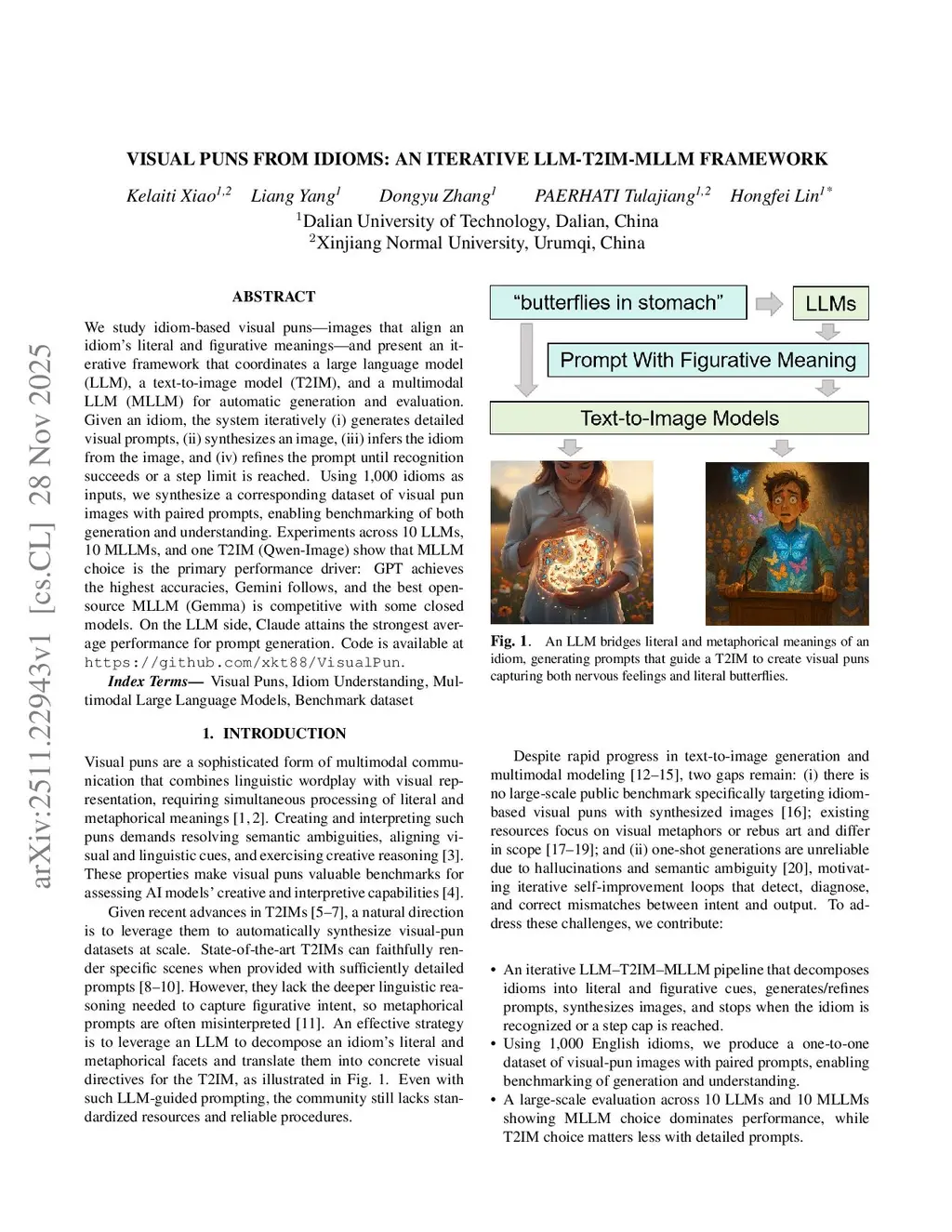 Visual Puns from Idioms: An Iterative LLM-T2IM-MLLM Framework