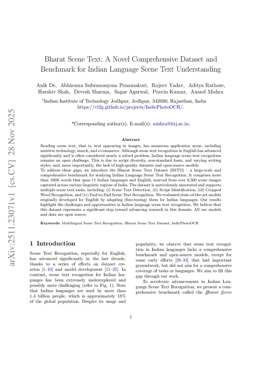 Bharat Scene Text: A Novel Comprehensive Dataset and Benchmark for Indian Language Scene Text Understanding