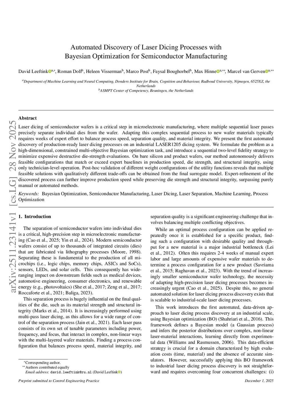 Automated Discovery of Laser Dicing Processes with Bayesian Optimization for Semiconductor Manufacturing