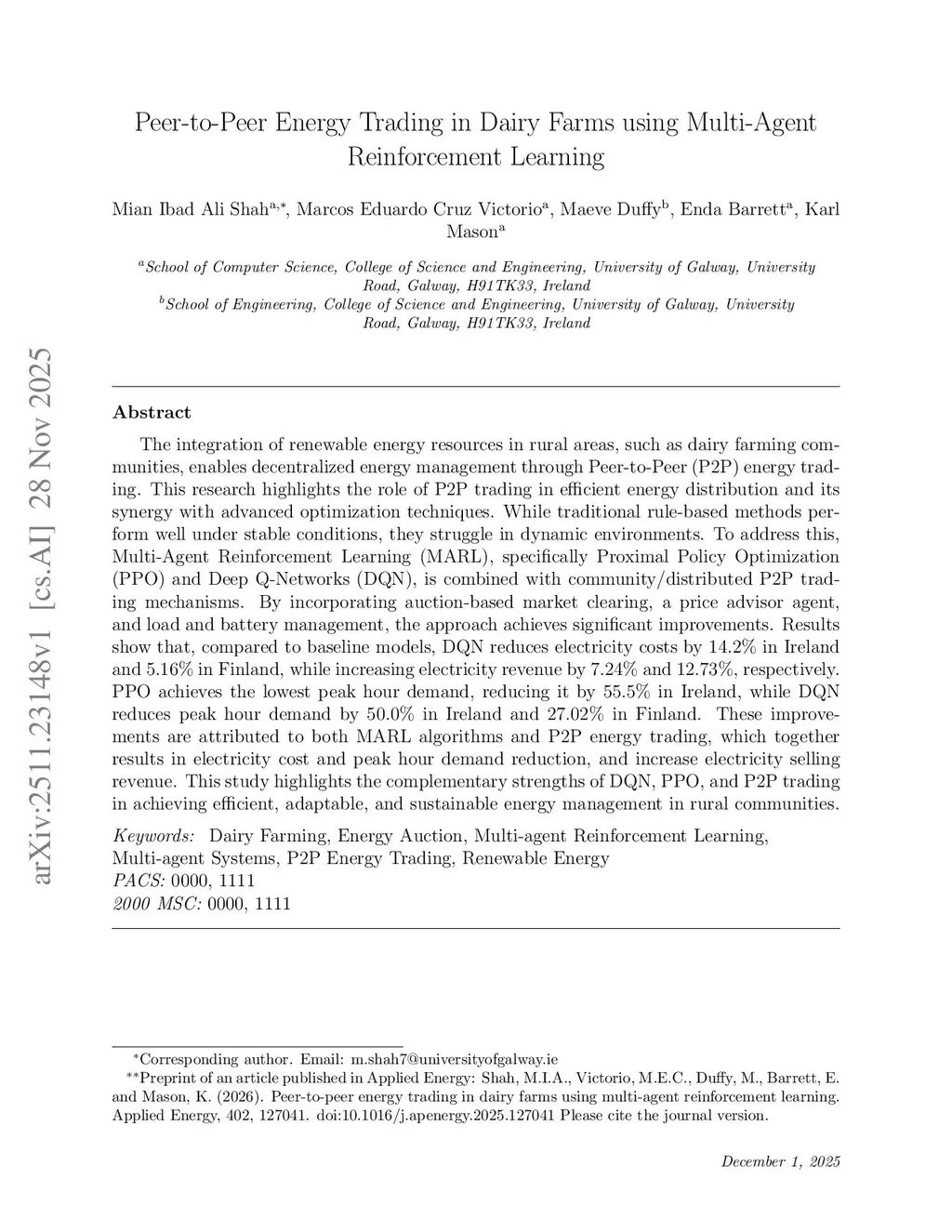 Peer-to-Peer Energy Trading in Dairy Farms using Multi-Agent Reinforcement Learning