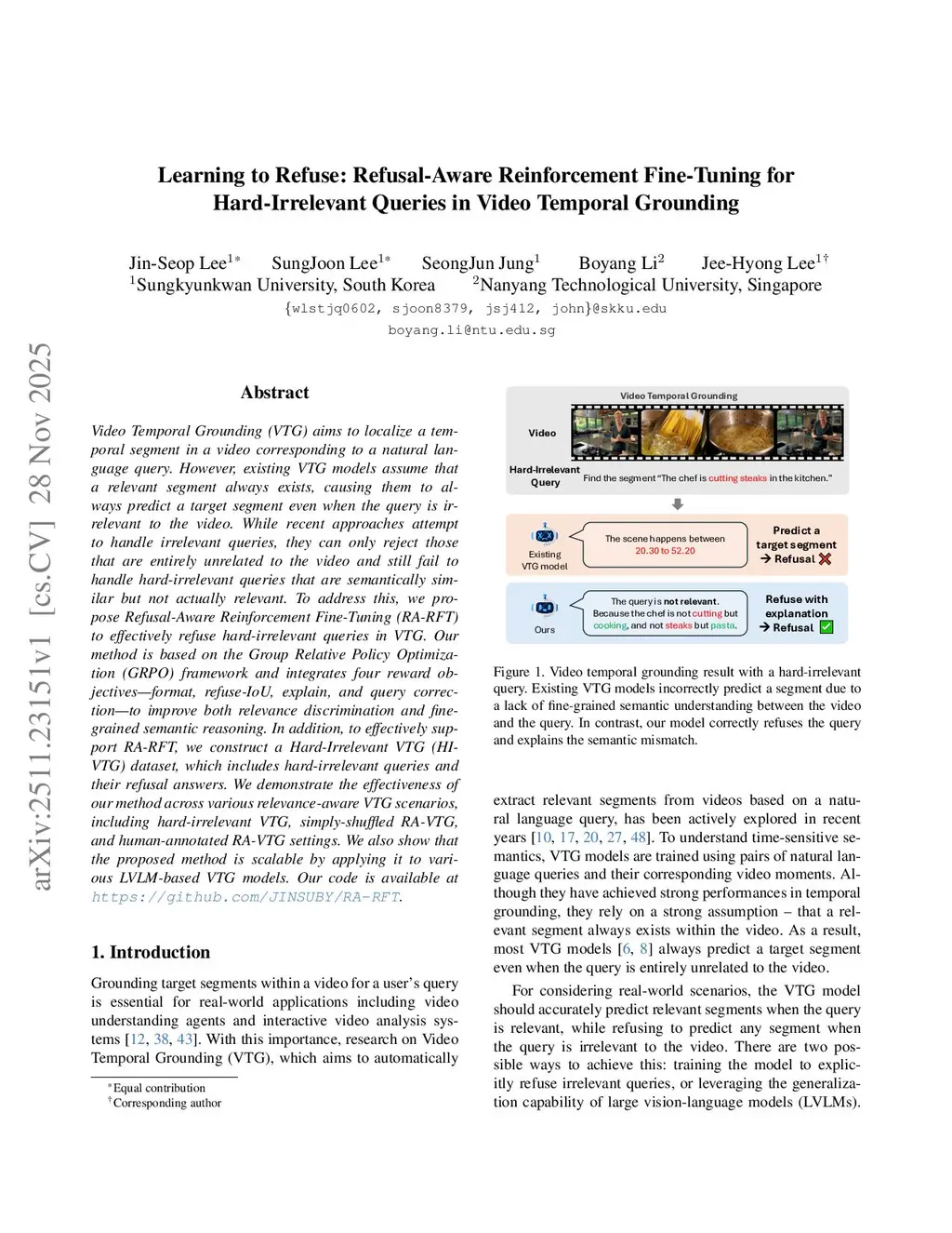 Learning to Refuse: Refusal-Aware Reinforcement Fine-Tuning for Hard-Irrelevant Queries in Video Temporal Grounding