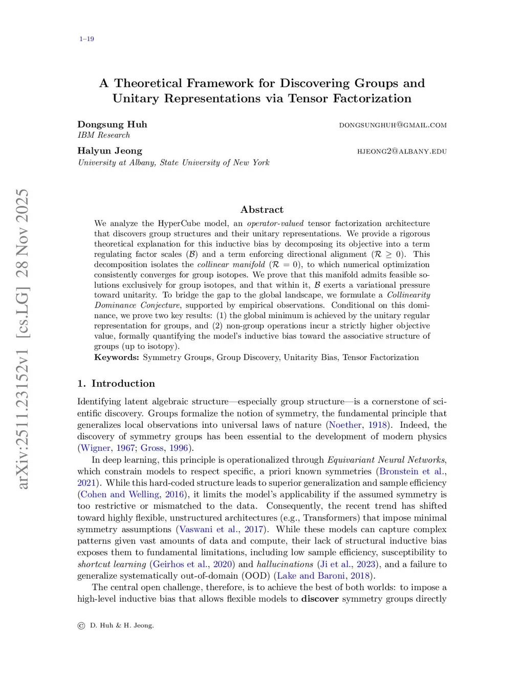 We analyze the HyperCube model, an \textit{operator-valued} tensor factorization architecture that discovers group structures and their unitary representations. We provide a rigorous theoretical explanation for this inductive bias by decomposing its objective into a term regulating factor scales () and a term enforcing directional alignment (). This decomposition isolates the \textit{collinear manifold} (), to which numerical optimization consistently converges for group isotopes. We prove that this manifold admits feasible solutions exclusively for group isotopes, and that within it, exerts a variational pressure toward unitarity. To bridge the gap to the global landscape, we formulate a \textit{Collinearity Dominance Conjecture}, supported by empirical observations. Conditional on this dominance, we prove two key results: (1) the global minimum is achieved by the unitary regular representation for groups, and (2) non-group operations incur a strictly higher objective value, formally quantifying the model's inductive bias toward the associative structure of groups (up to isotopy).