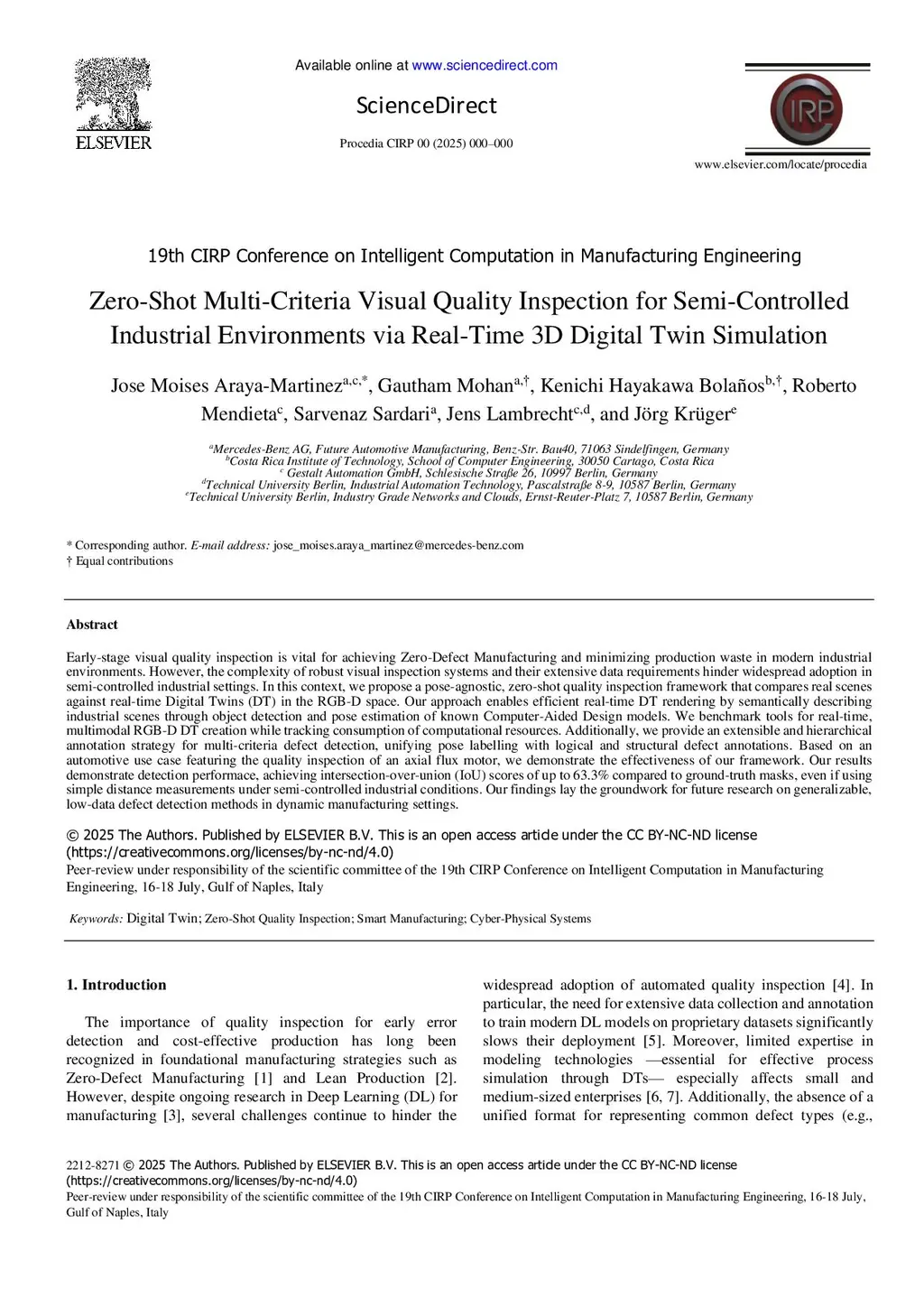 Zero-Shot Multi-Criteria Visual Quality Inspection for Semi-Controlled Industrial Environments via Real-Time 3D Digital Twin Simulation