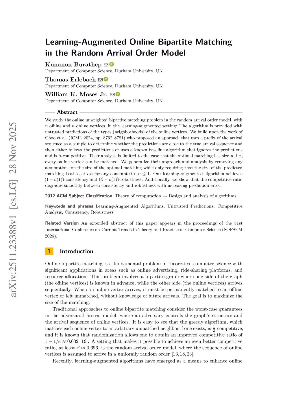 We study the online unweighted bipartite matching problem in the random arrival order model, with offline and online vertices, in the learning-augmented setting: The algorithm is provided with untrusted predictions of the types (neighborhoods) of the online vertices. We build upon the work of Choo et al. (ICML 2024, pp. 8762-8781) who proposed an approach that uses a prefix of the arrival sequence as a sample to determine whether the predictions are close to the true arrival sequence and then either follows the predictions or uses a known baseline algorithm that ignores the predictions and is -competitive. Their analysis is limited to the case that the optimal matching has size , i.e., every online vertex can be matched. We generalize their approach and analysis by removing any assumptions on the size of the optimal matching while only requiring that the size of the predicted matching is at least for any constant . Our learning-augmented algorithm achieves -consistency and -robustness. Additionally, we show that the competitive ratio degrades smoothly between consistency and robustness with increasing prediction error.