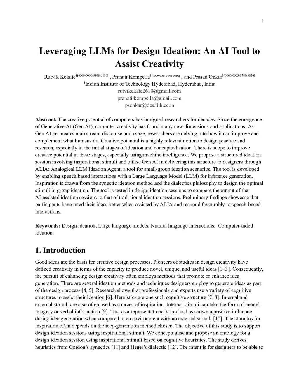 The creative potential of computers has intrigued researchers for decades. Since the emergence of Generative AI (Gen AI), computer creativity has found many new dimensions and applications. As Gen AI permeates mainstream discourse and usage, researchers are delving into how it can improve and complement what humans do. Creative potential is a highly relevant notion to design practice and research, especially in the initial stages of ideation and conceptualisation. There is scope to improve creative potential in these stages, especially using machine intelligence. We propose a structured ideation session involving inspirational stimuli and utilise Gen AI in delivering this structure to designers through ALIA: Analogical LLM Ideation Agent, a tool for small-group ideation scenarios. The tool is developed by enabling speech based interactions with a Large Language Model (LLM) for inference generation. Inspiration is drawn from the synectic ideation method and the dialectics philosophy to design the optimal stimuli in group ideation. The tool is tested in design ideation sessions to compare the output of the AI-assisted ideation sessions to that of tradi tional ideation sessions. Preliminary findings showcase that participants have rated their ideas better when assisted by ALIA and respond favourably to speech-based interactions.