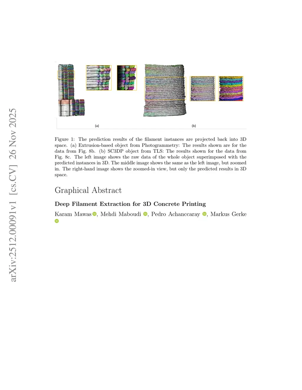 The architecture, engineering and construction (AEC) industry is constantly evolving to meet the demand for sustainable and effective design and construction of the built environment. In the literature, two primary deposition techniques for large-scale 3D concrete printing (3DCP) have been described, namely extrusion-based (Contour Crafting-CC) and shotcrete 3D printing (SC3DP) methods. The deposition methods use a digitally controlled nozzle to print material layer by layer. The continuous flow of concrete material used to create the printed structure is called a filament or layer. As these filaments are the essential structure defining the printed object, the filaments' geometry quality control is crucial. This paper presents an automated procedure for quality control (QC) of filaments in extrusion-based and SC3DP printing methods. The paper also describes a workflow that is independent of the sensor used for data acquisition, such as a camera, a structured light system (SLS) or a terrestrial laser scanner (TLS). This method can be used with materials in either the fresh or cured state. Thus, it can be used for online and post-printing QC.