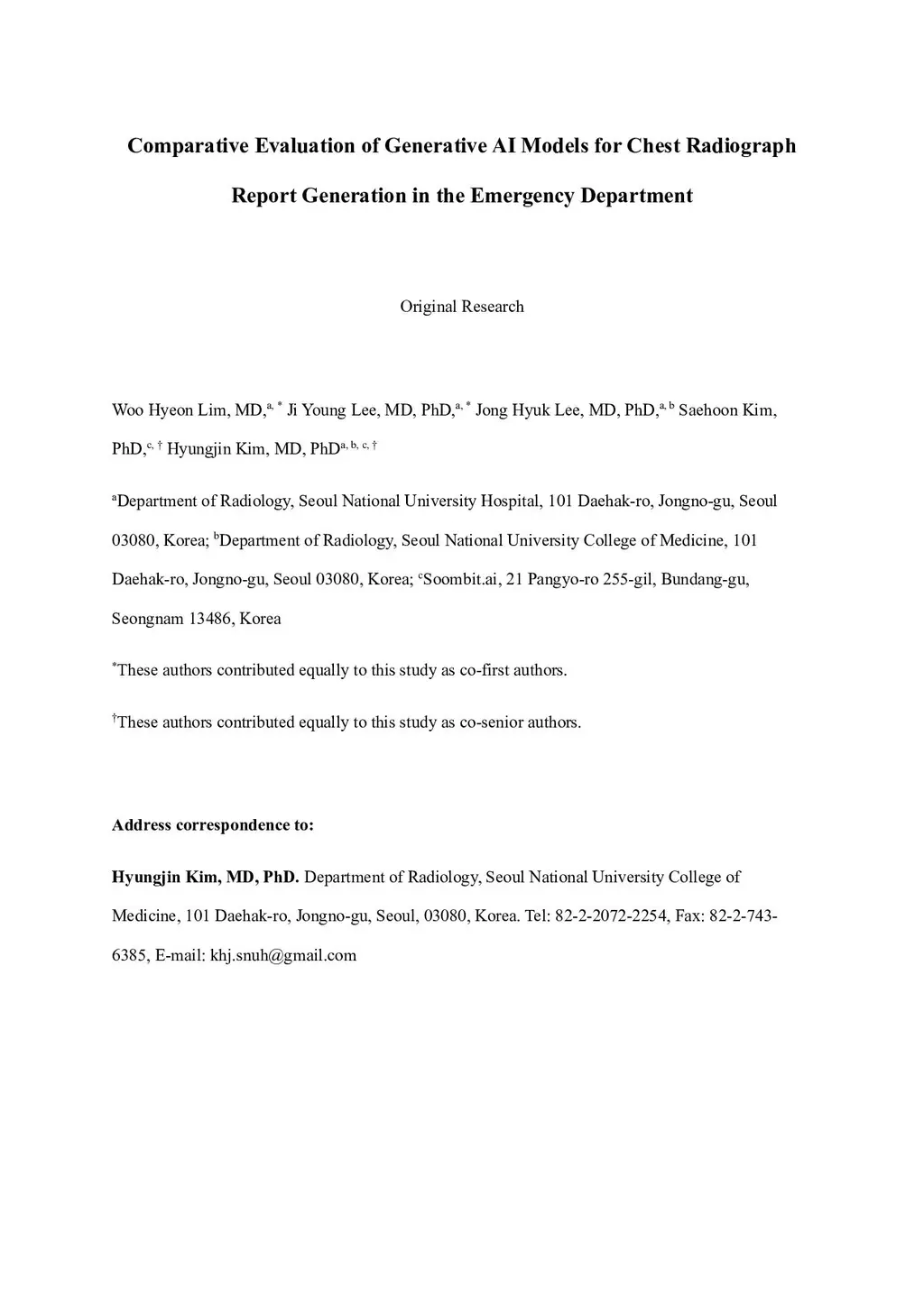 Comparative Evaluation of Generative AI Models for Chest Radiograph Report Generation in the Emergency Department