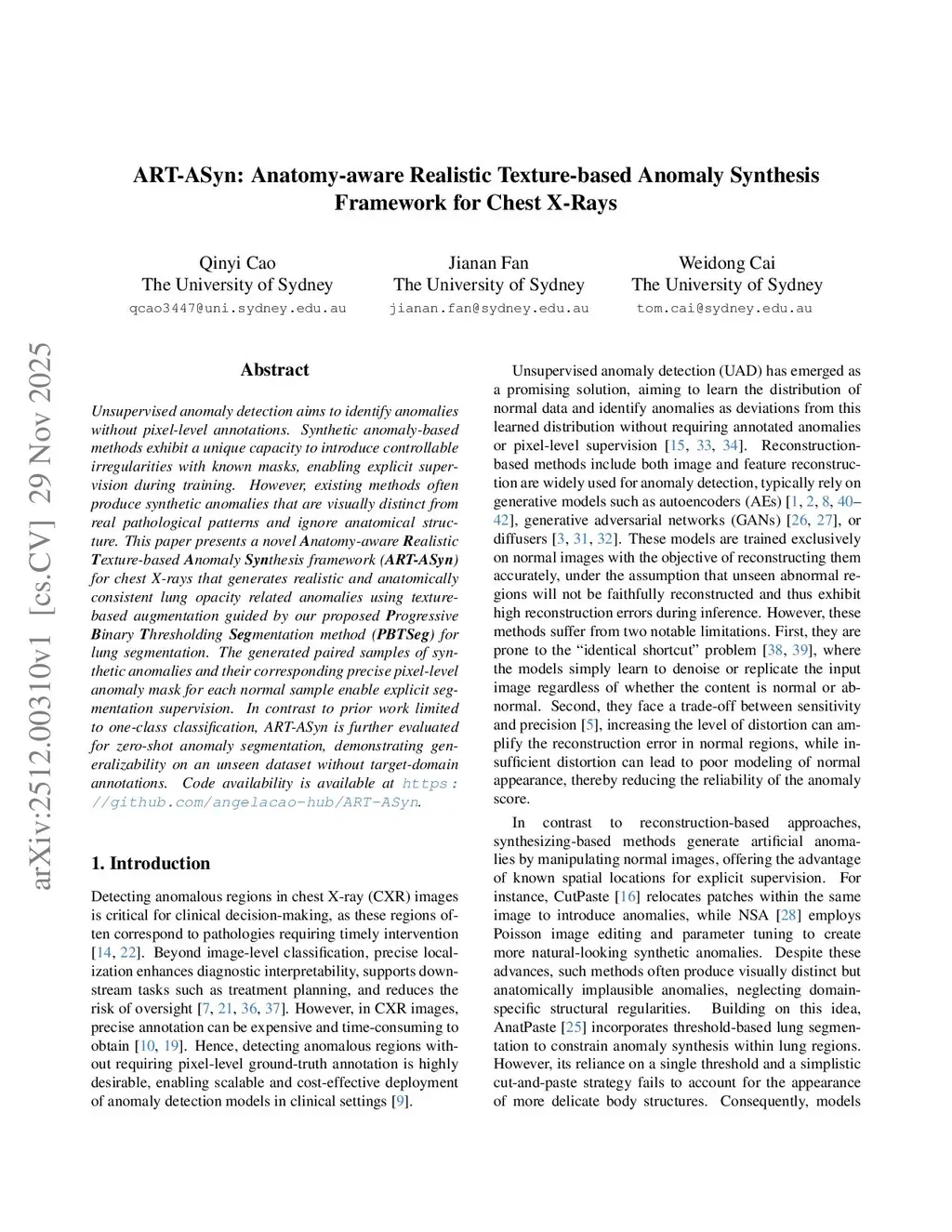 ART-ASyn: Anatomy-aware Realistic Texture-based Anomaly Synthesis Framework for Chest X-Rays