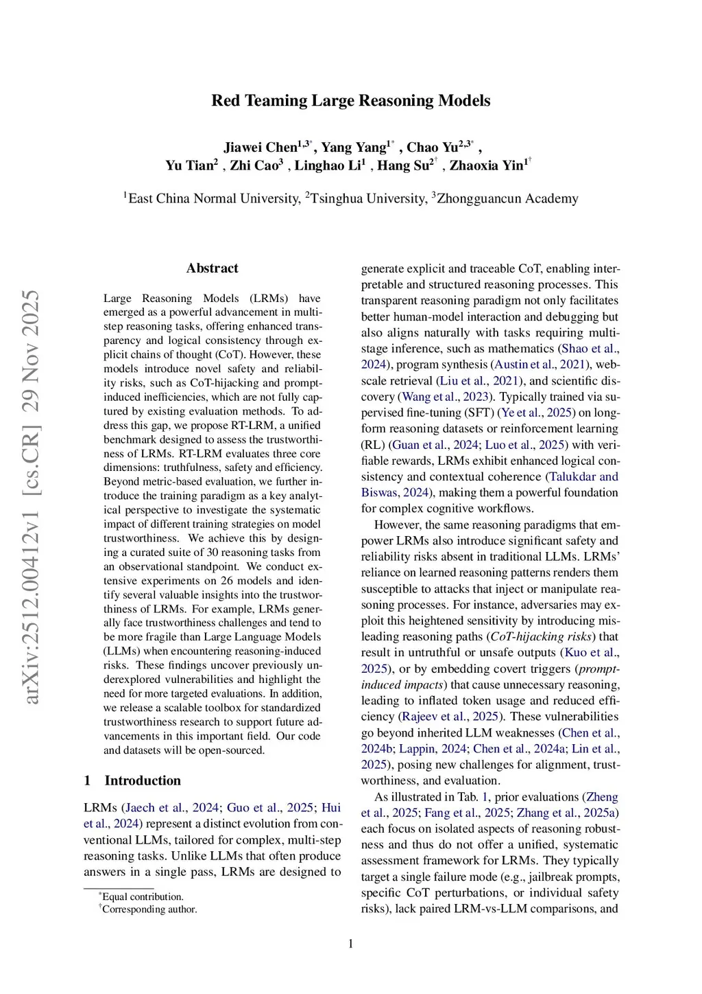 Large Reasoning Models (LRMs) have emerged as a powerful advancement in multi-step reasoning tasks, offering enhanced transparency and logical consistency through explicit chains of thought (CoT). However, these models introduce novel safety and reliability risks, such as CoT-hijacking and prompt-induced inefficiencies, which are not fully captured by existing evaluation methods. To address this gap, we propose RT-LRM, a unified benchmark designed to assess the trustworthiness of LRMs. RT-LRM evaluates three core dimensions: truthfulness, safety and efficiency. Beyond metric-based evaluation, we further introduce the training paradigm as a key analytical perspective to investigate the systematic impact of different training strategies on model trustworthiness. We achieve this by designing a curated suite of 30 reasoning tasks from an observational standpoint. We conduct extensive experiments on 26 models and identify several valuable insights into the trustworthiness of LRMs. For example, LRMs generally face trustworthiness challenges and tend to be more fragile than Large Language Models (LLMs) when encountering reasoning-induced risks. These findings uncover previously underexplored vulnerabilities and highlight the need for more targeted evaluations. In addition, we release a scalable toolbox for standardized trustworthiness research to support future advancements in this important field. Our code and datasets will be open-sourced.