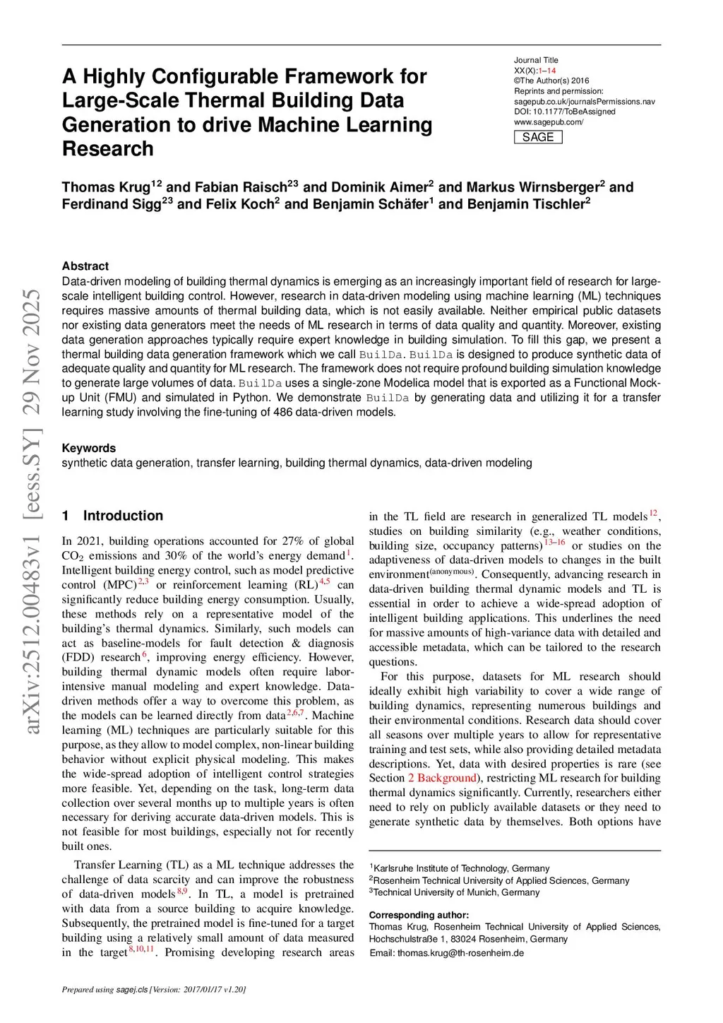 A Highly Configurable Framework for Large-Scale Thermal Building Data Generation to drive Machine Learning Research