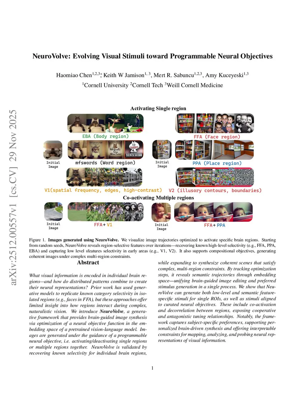 What visual information is encoded in individual brain regions, and how do distributed patterns combine to create their neural representations? Prior work has used generative models to replicate known category selectivity in isolated regions (e.g., faces in FFA), but these approaches offer limited insight into how regions interact during complex, naturalistic vision. We introduce NeuroVolve, a generative framework that provides brain-guided image synthesis via optimization of a neural objective function in the embedding space of a pretrained vision-language model. Images are generated under the guidance of a programmable neural objective, i.e., activating or deactivating single regions or multiple regions together. NeuroVolve is validated by recovering known selectivity for individual brain regions, while expanding to synthesize coherent scenes that satisfy complex, multi-region constraints. By tracking optimization steps, it reveals semantic trajectories through embedding space, unifying brain-guided image editing and preferred stimulus generation in a single process. We show that NeuroVolve can generate both low-level and semantic feature-specific stimuli for single ROIs, as well as stimuli aligned to curated neural objectives. These include co-activation and decorrelation between regions, exposing cooperative and antagonistic tuning relationships. Notably, the framework captures subject-specific preferences, supporting personalized brain-driven synthesis and offering interpretable constraints for mapping, analyzing, and probing neural representations of visual information.