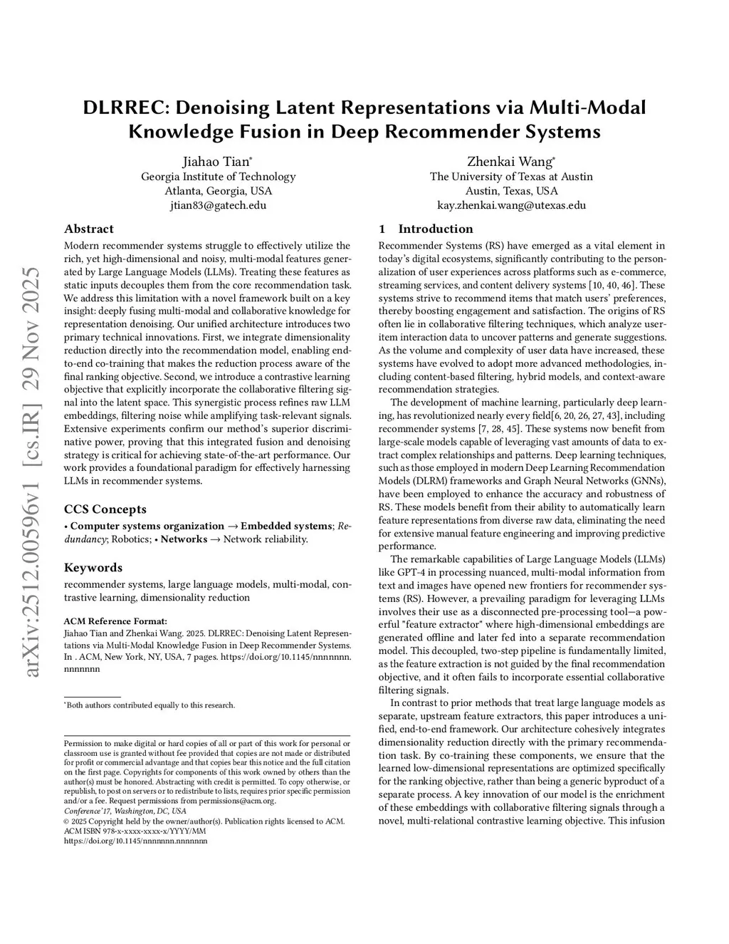 DLRREC: Denoising Latent Representations via Multi-Modal Knowledge Fusion in Deep Recommender Systems