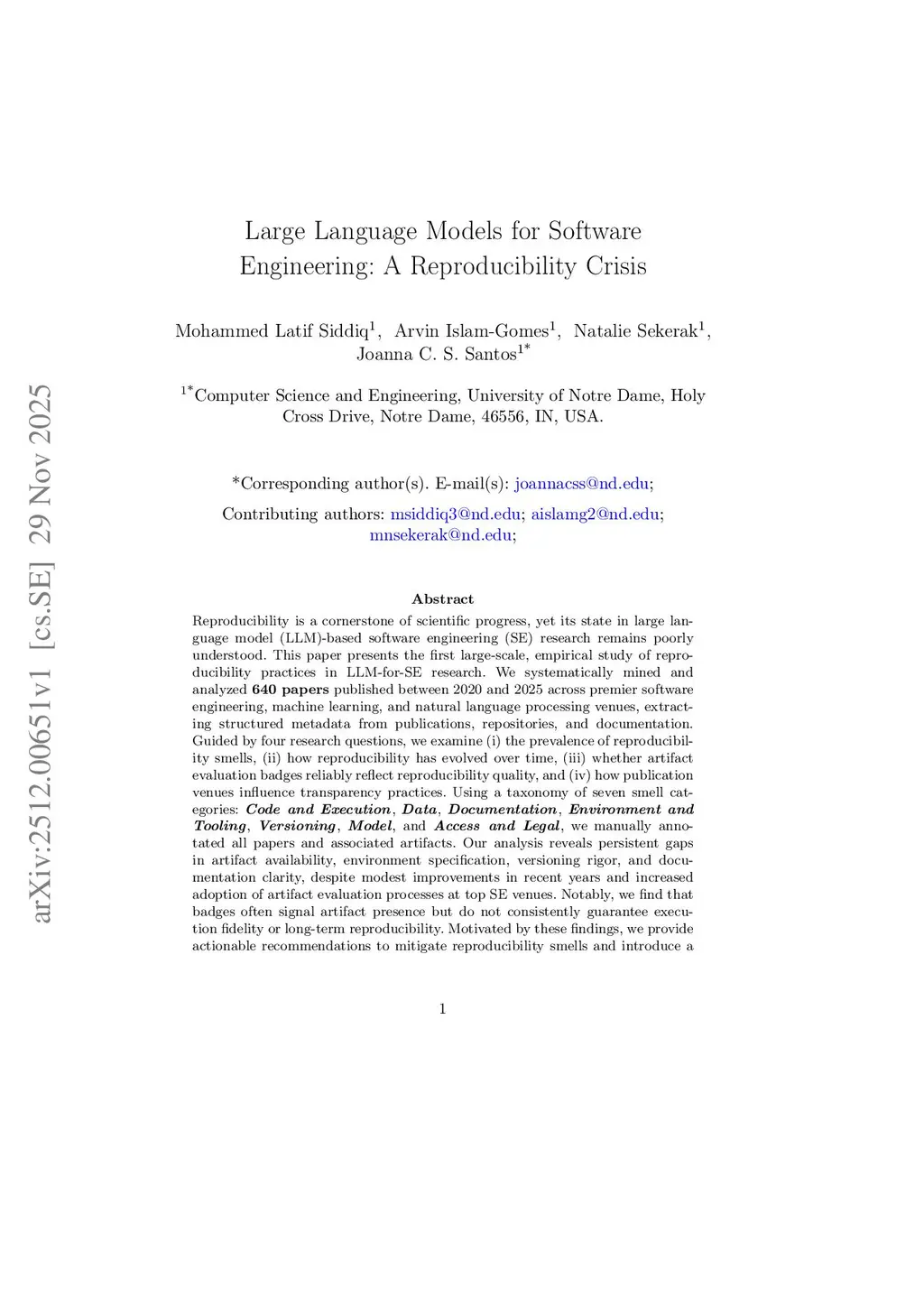 Large Language Models for Software Engineering: A Reproducibility Crisis