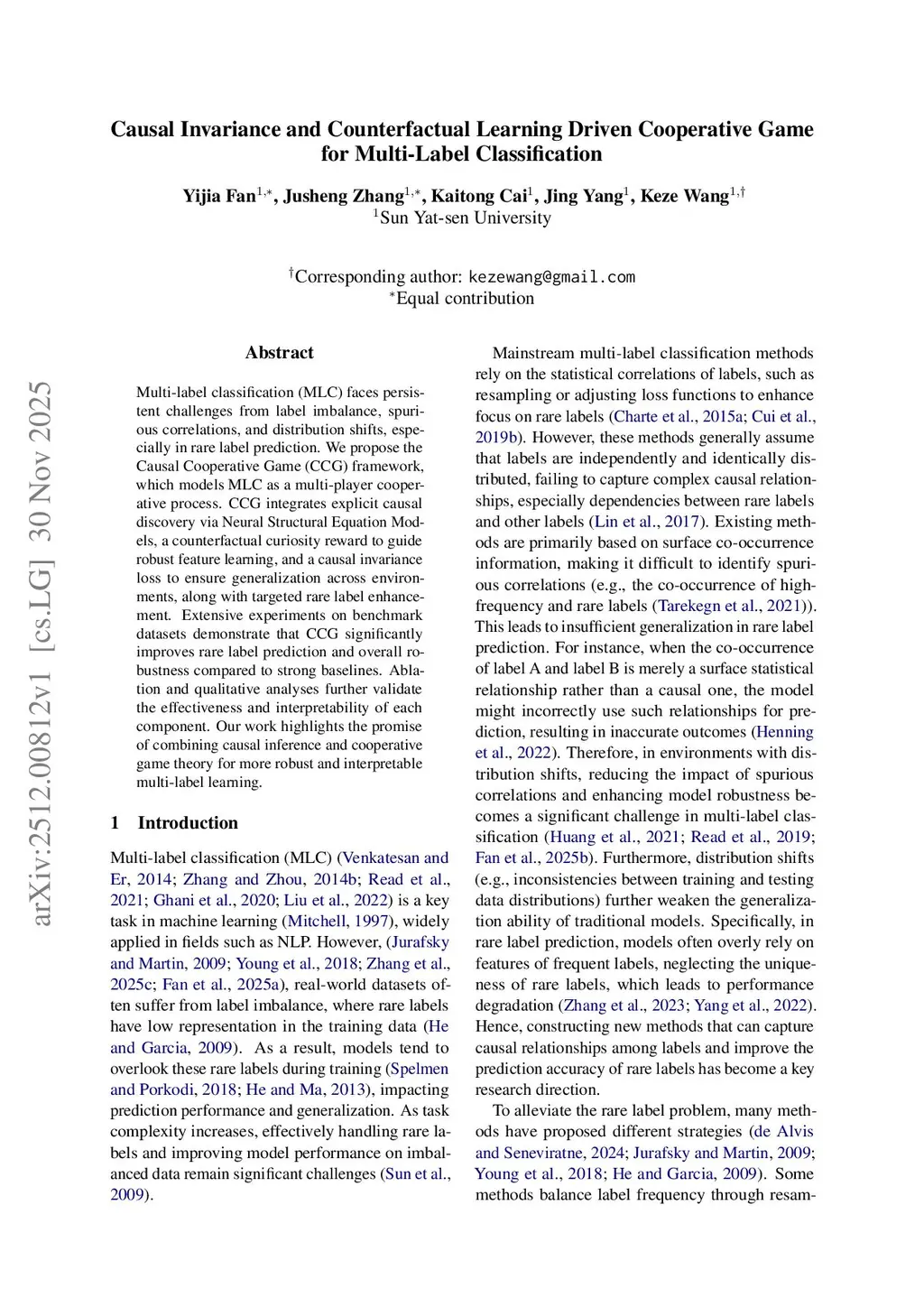 Causal Invariance and Counterfactual Learning Driven Cooperative Game for Multi-Label Classification