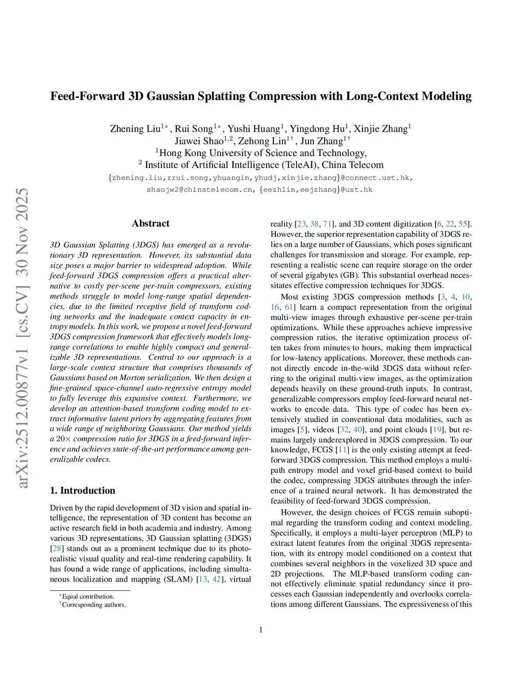Feed-Forward 3D Gaussian Splatting Compression with Long-Context Modeling