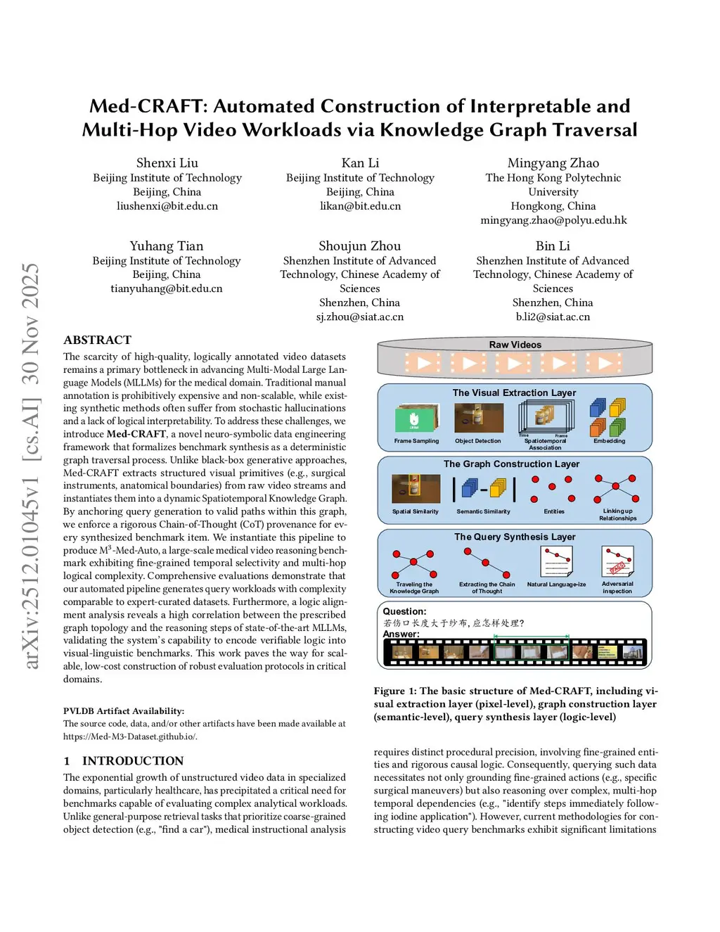 Med-CRAFT: Automated Construction of Interpretable and Multi-Hop Video Workloads via Knowledge Graph Traversal