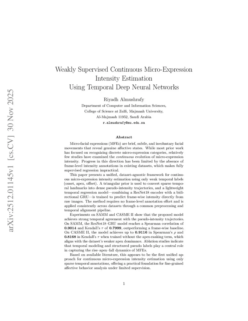 Weakly Supervised Continuous Micro-Expression Intensity Estimation Using Temporal Deep Neural Network