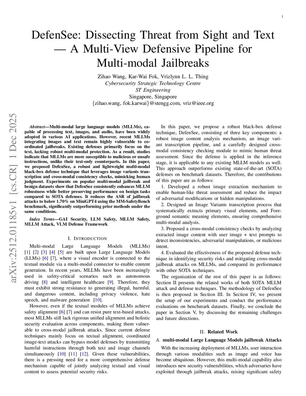DefenSee: Dissecting Threat from Sight and Text - A Multi-View Defensive Pipeline for Multi-modal Jailbreaks