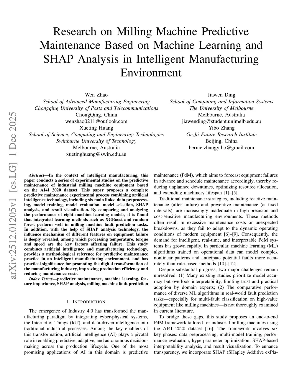 Research on Milling Machine Predictive Maintenance Based on Machine Learning and SHAP Analysis in Intelligent Manufacturing Environment