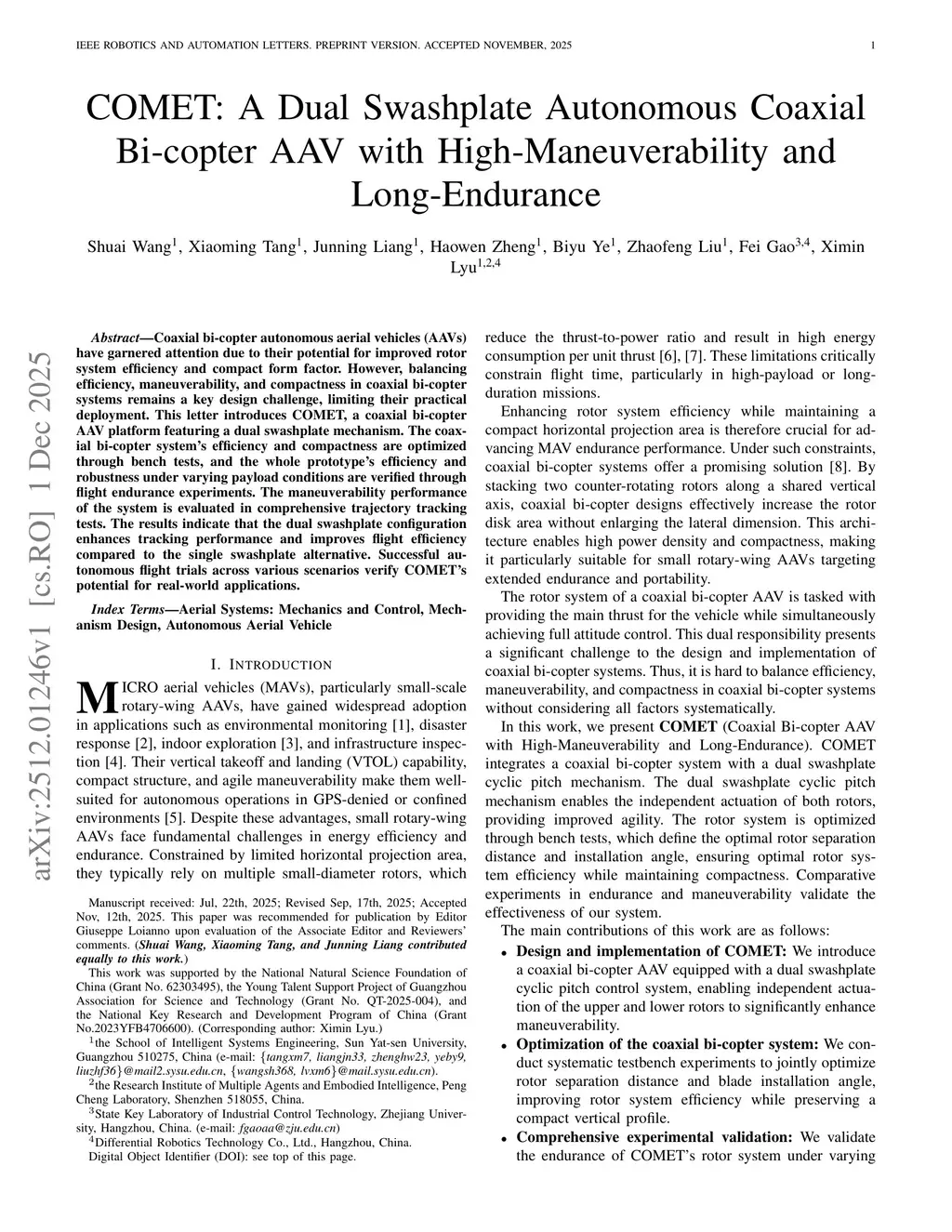COMET: A Dual Swashplate Autonomous Coaxial Bi-copter AAV with High-Maneuverability and Long-Endurance