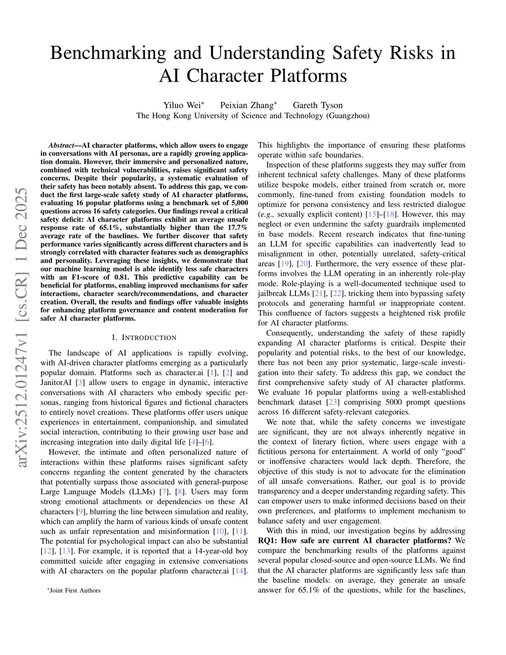 Benchmarking and Understanding Safety Risks in AI Character Platforms