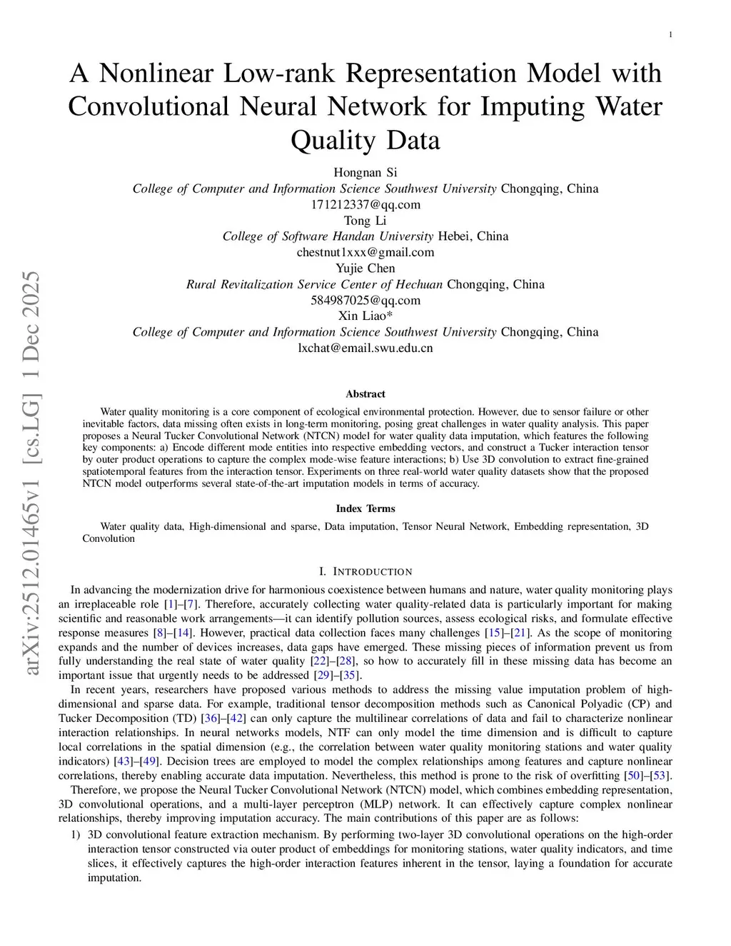 Neural Tucker Convolutional Network for Water Quality Analysis