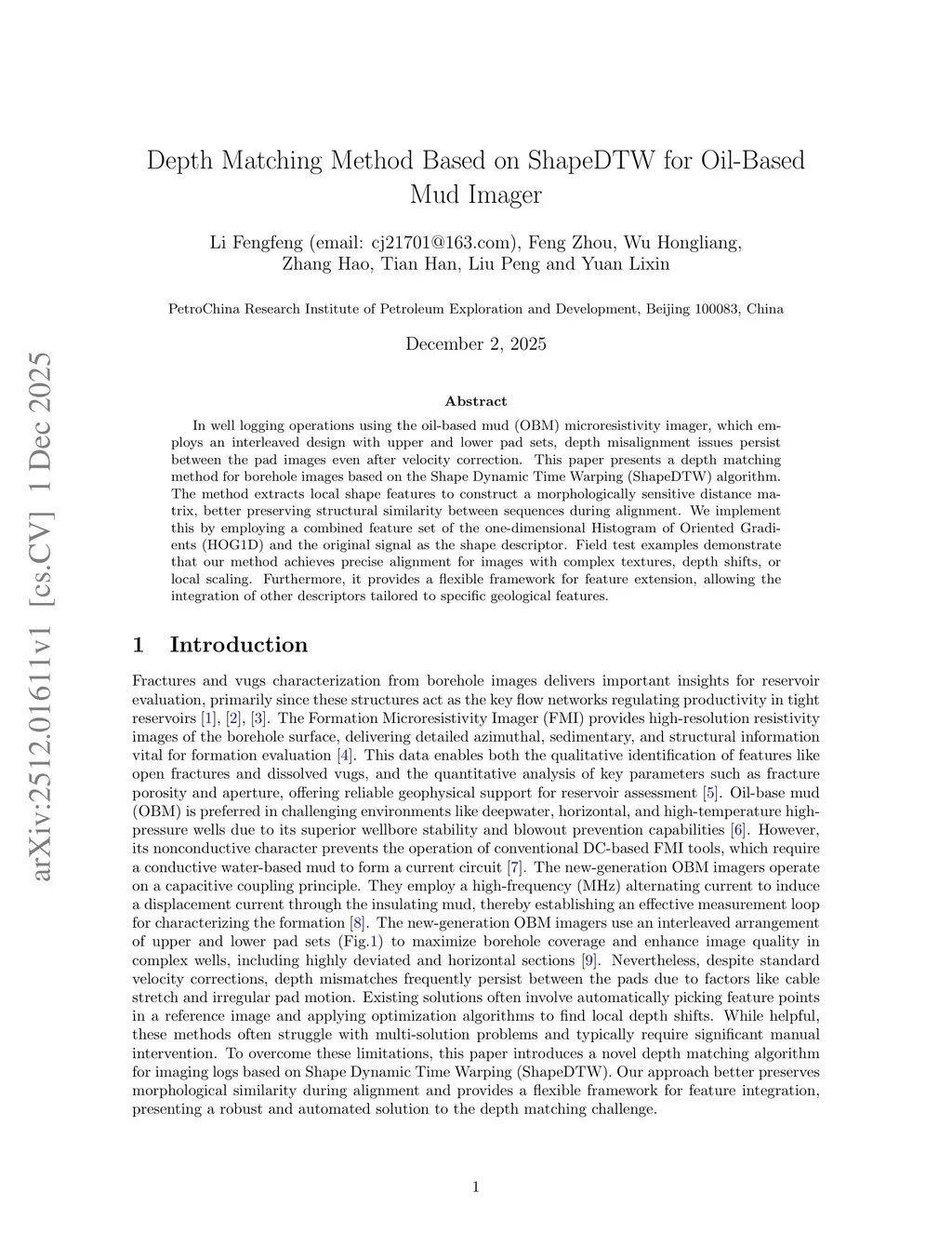 Depth Matching Method Based on ShapeDTW for Oil-Based Mud Imager