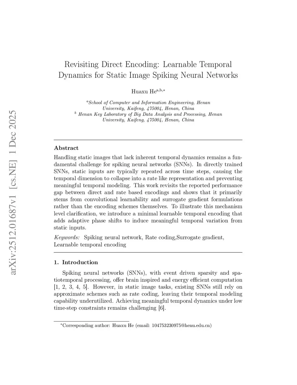 Handling static images that lack inherent temporal dynamics remains a fundamental challenge for spiking neural networks (SNNs). In directly trained SNNs, static inputs are typically repeated across time steps, causing the temporal dimension to collapse into a rate like representation and preventing meaningful temporal modeling. This work revisits the reported performance gap between direct and rate based encodings and shows that it primarily stems from convolutional learnability and surrogate gradient formulations rather than the encoding schemes themselves. To illustrate this mechanism level clarification, we introduce a minimal learnable temporal encoding that adds adaptive phase shifts to induce meaningful temporal variation from static inputs.