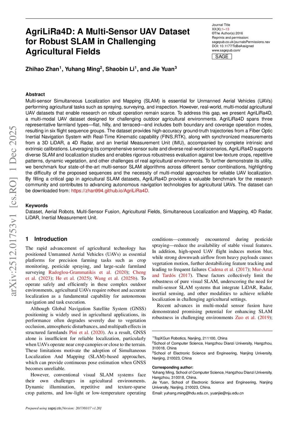 AgriLiRa4D: A Multi-Sensor UAV Dataset for Robust SLAM in Challenging Agricultural Fields