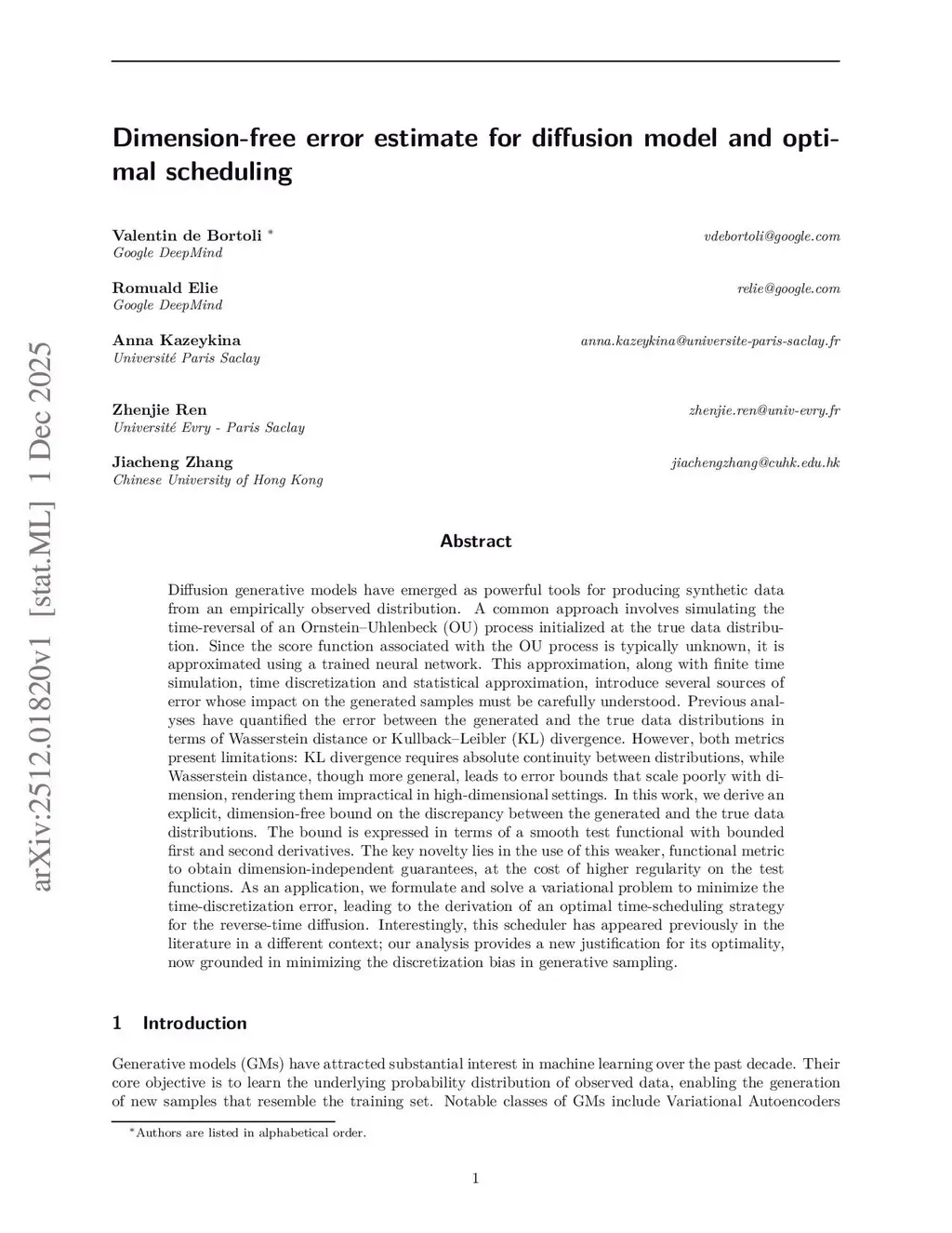Dimension-free error estimate for diffusion model and optimal scheduling