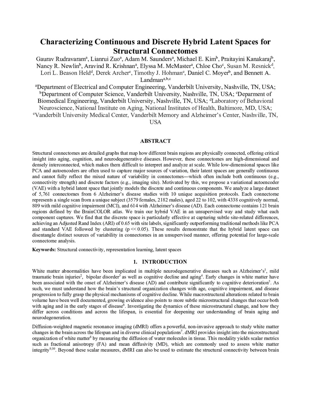 Characterizing Continuous and Discrete Hybrid Latent Spaces for Structural Connectomes