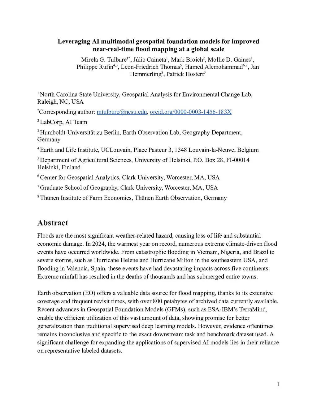 Leveraging AI multimodal geospatial foundation models for improved near-real-time flood mapping at a global scale