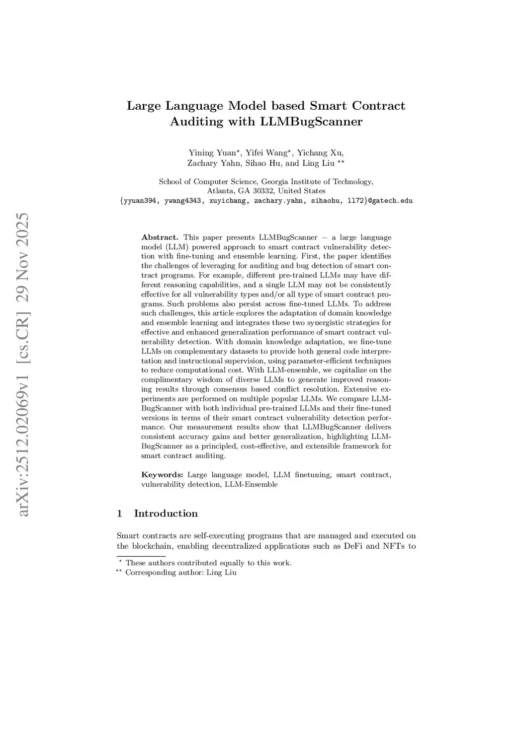 This paper presents LLMBugScanner, a large language model (LLM) based framework for smart contract vulnerability detection using fine-tuning and ensemble learning. Smart contract auditing presents several challenges for LLMs: different pretrained models exhibit varying reasoning abilities, and no single model performs consistently well across all vulnerability types or contract structures. These limitations persist even after fine-tuning individual LLMs.To address these challenges, LLMBugScanner combines domain knowledge adaptation with ensemble reasoning to improve robustness and generalization. Through domain knowledge adaptation, we fine-tune LLMs on complementary datasets to capture both general code semantics and instruction-guided vulnerability reasoning, using parameter-efficient tuning to reduce computational cost. Through ensemble reasoning, we leverage the complementary strengths of multiple LLMs and apply a consensus-based conflict resolution strategy to produce more reliable vulnerability assessments.We conduct extensive experiments across multiple popular LLMs and compare LLMBugScanner with both pretrained and fine-tuned individual models. Results show that LLMBugScanner achieves consistent accuracy improvements and stronger generalization, demonstrating that it provides a principled, cost-effective, and extensible framework for smart contract auditing.