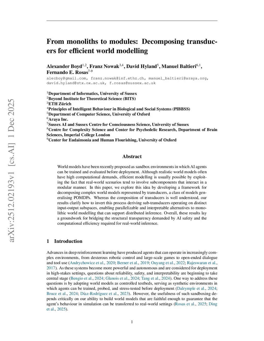 From monoliths to modules: Decomposing transducers for efficient world modelling