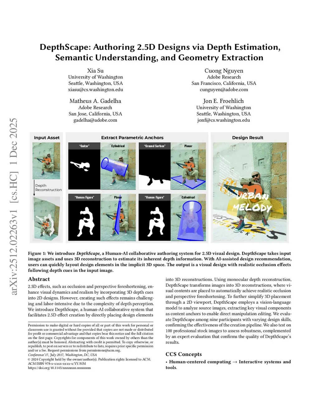 DepthScape: Authoring 2.5D Designs via Depth Estimation, Semantic Understanding, and Geometry Extraction