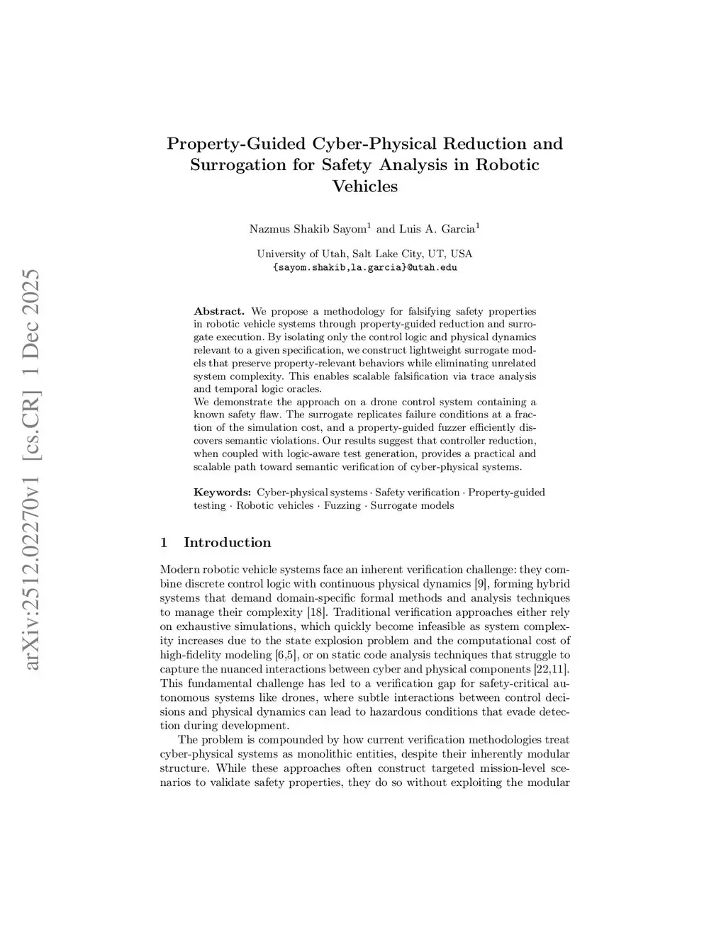 Property-Guided Cyber-Physical Reduction and Surrogation for Safety Analysis in Robotic Vehicles