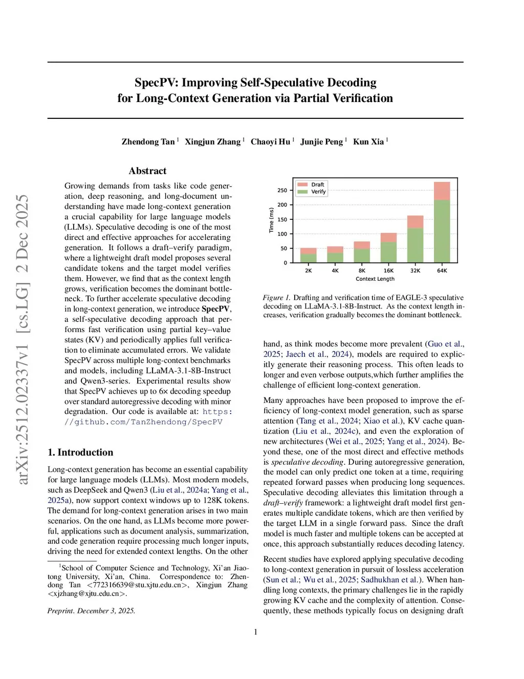 SpecPV: Improving Self-Speculative Decoding for Long-Context Generation via Partial Verification