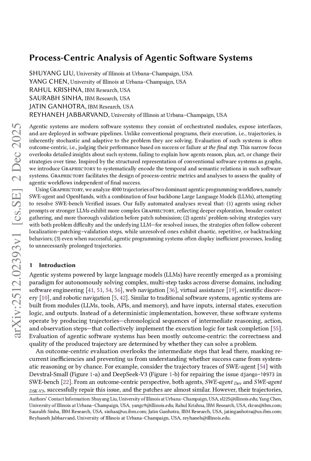 Process-Centric Analysis of Agentic Software Systems
