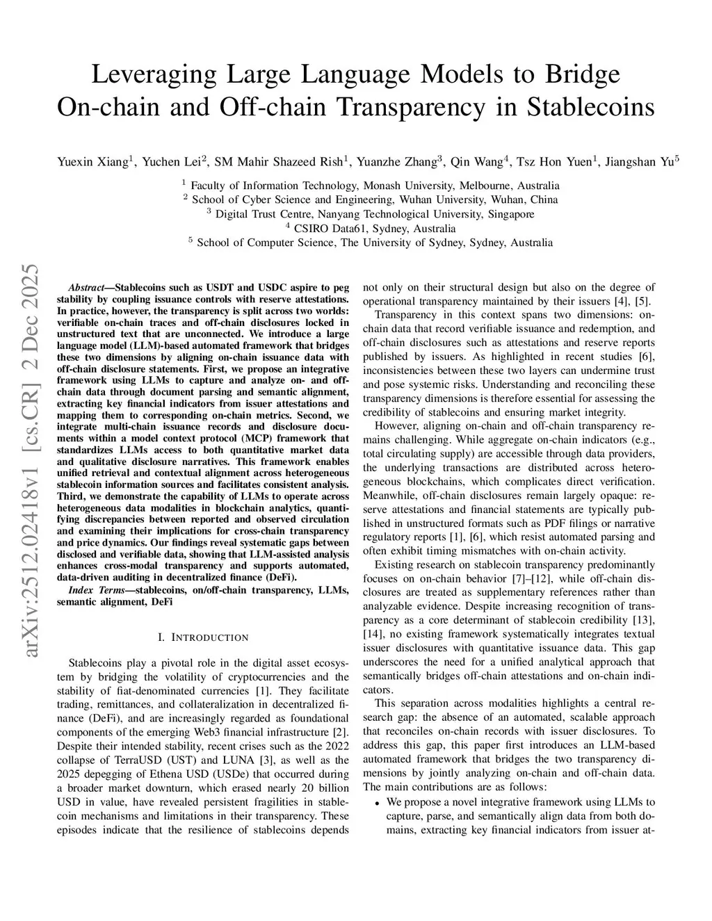 Leveraging Large Language Models to Bridge On-chain and Off-chain Transparency in Stablecoins